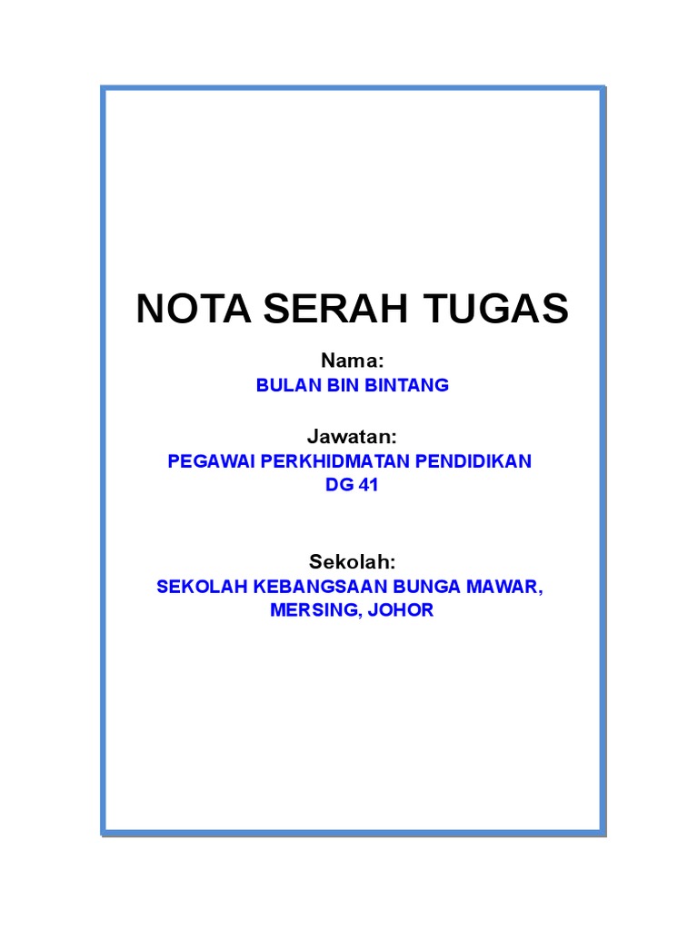 Gambar contoh nota serah tugas pegawai kerajaan terbaik 2019.